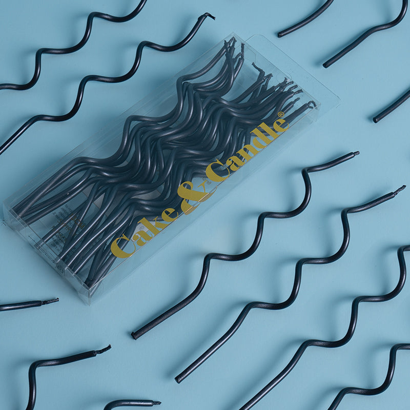 13cm SWIRLY Cake Candles BLACK (Pack of 16)