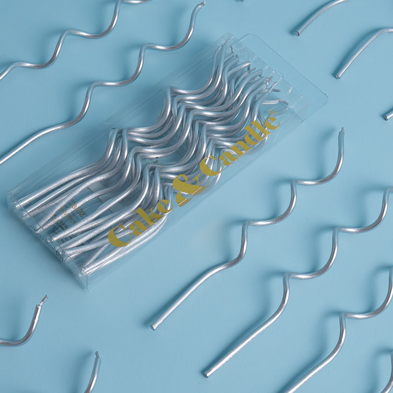 13cm SWIRLY Cake Candles SILVER (Pack of 16)